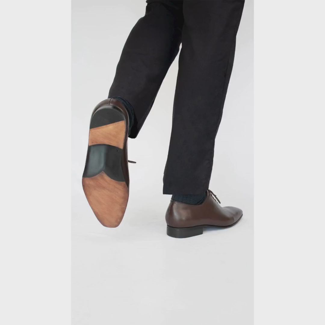 If you have that sophisticated quality suit, imported or made by an expert tailor, you have to have one of the most elegant lace-up shoes, the Wholecut Oxford , it is a completely smooth shoe, it only has one seam in the back, the elongated shape makes the shoe more bold and sophisticated, an ideal model for both formal and elegant attire at weddings.