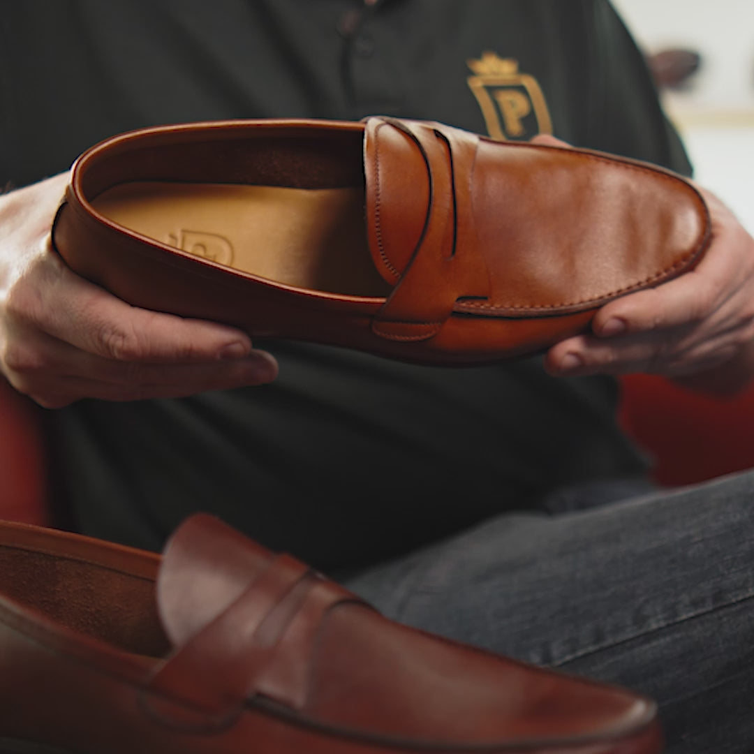 Esse é o mocassim mais confortável que o Pacco já produziu, um conforto e uma flexibilidade incrível, tudo nele foi pensado para proporcionar como se não estivesse usando um sapato, para se usar sem meias. Além de confortável, é um mocassim de extrema elegância, possui a pala mais alta e uma forma italiana de bico moderno.